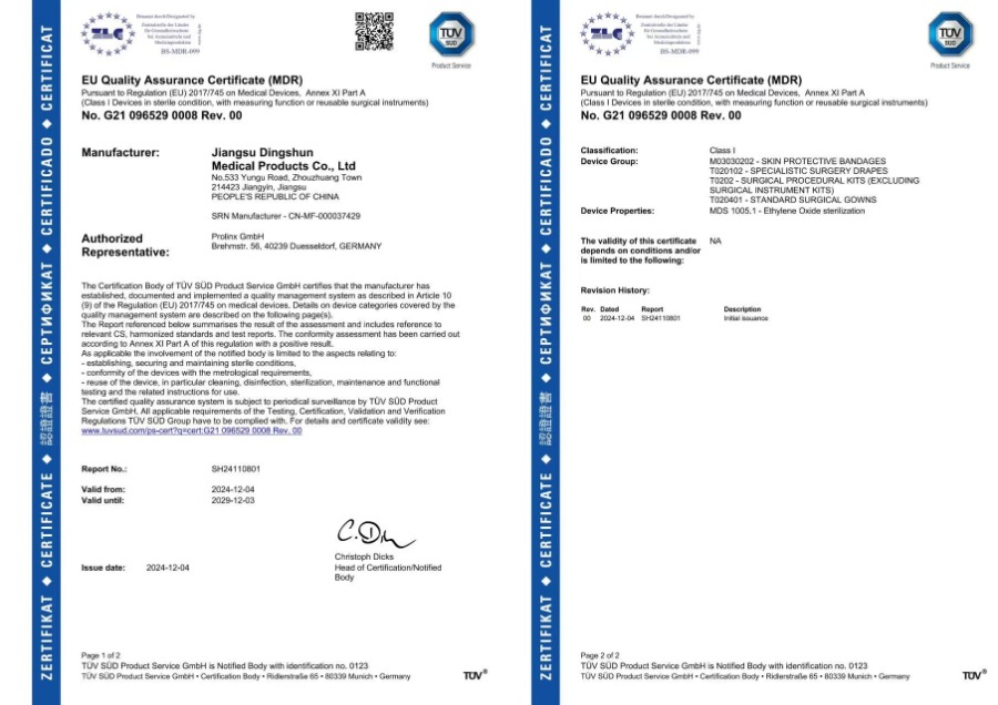Dingshun Medical teraz prešiel mnohými medzinárodnými certifikáciami vrátane CE, MDR, FDA, ISO13485 a ISO9001.
