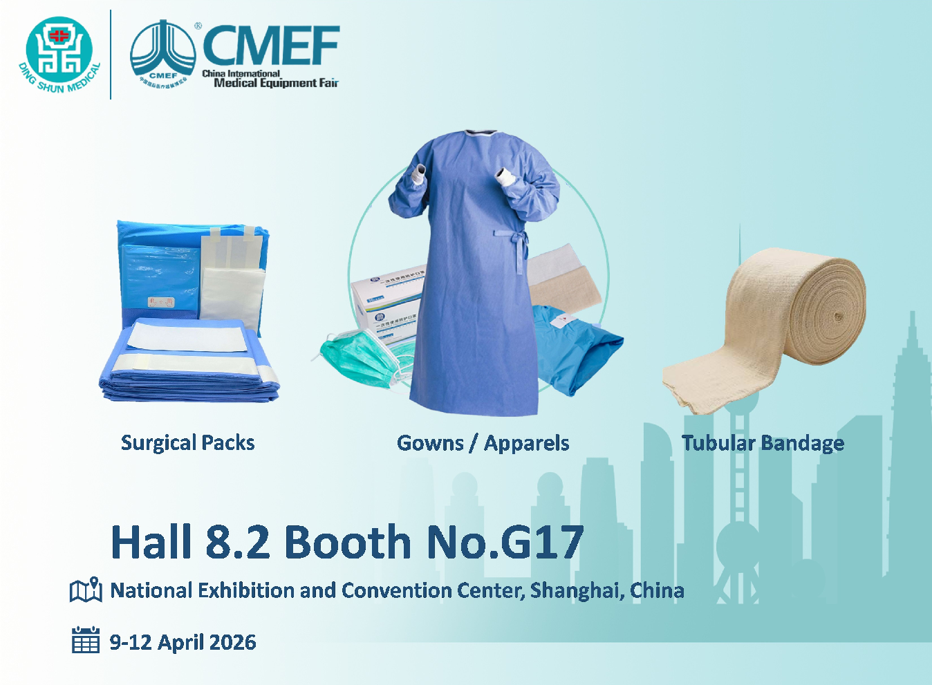 Spoločnosť predvedie svoje Chirurgické balíčky , Šaty/oblečenie , a Rúrkový obväz produktové rady v hale 8.2, stánok č. G17. Podujatie sa koná v Národnom výstavnom a kongresovom centre v Šanghaji.